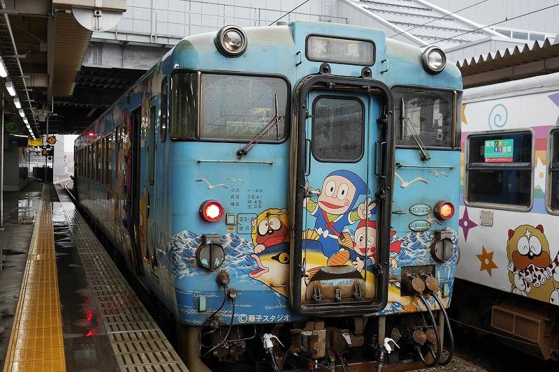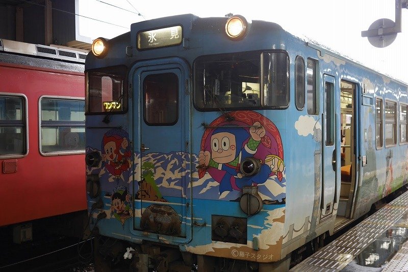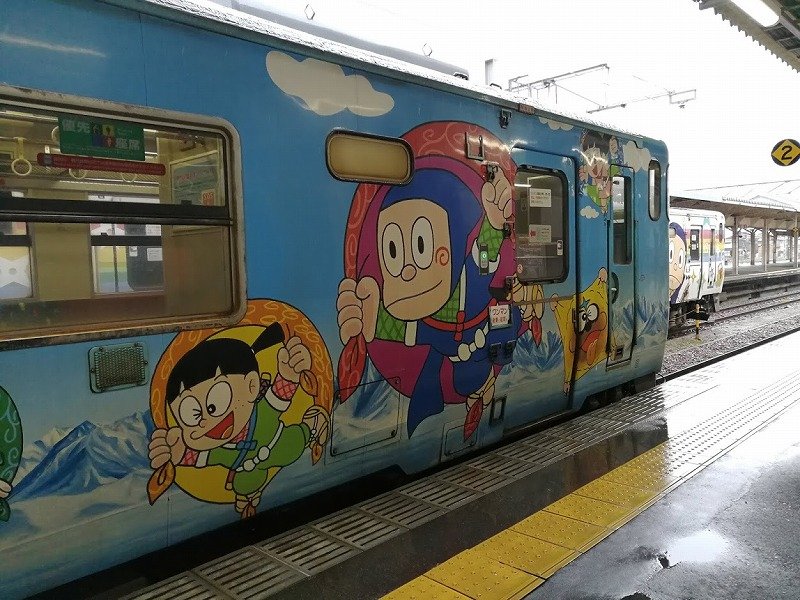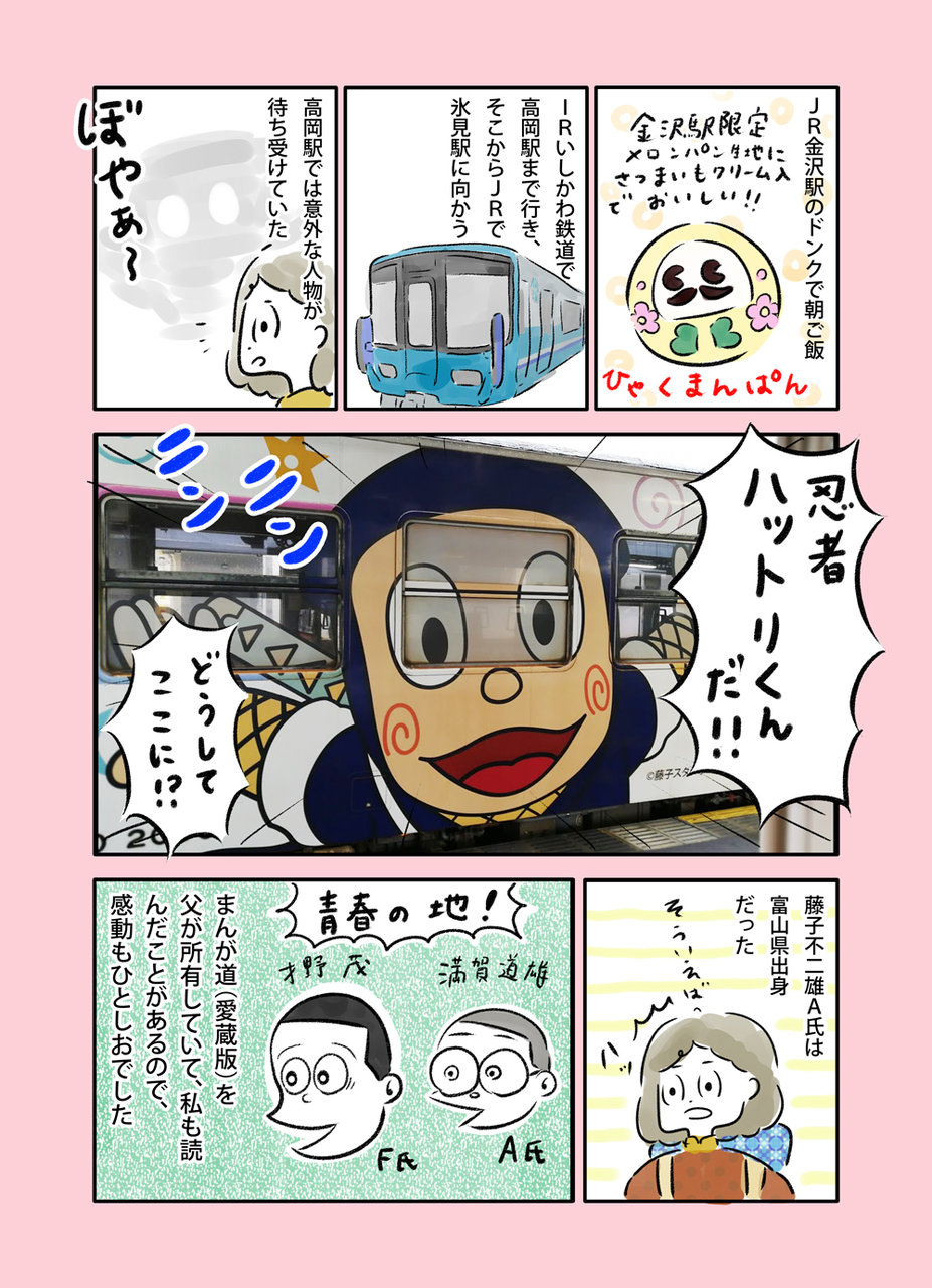 あと、列車に乗ると、氷見までの間、我孫子先生縁の地を通ると 、ハットリくんがアナウンスをしてくれた。
