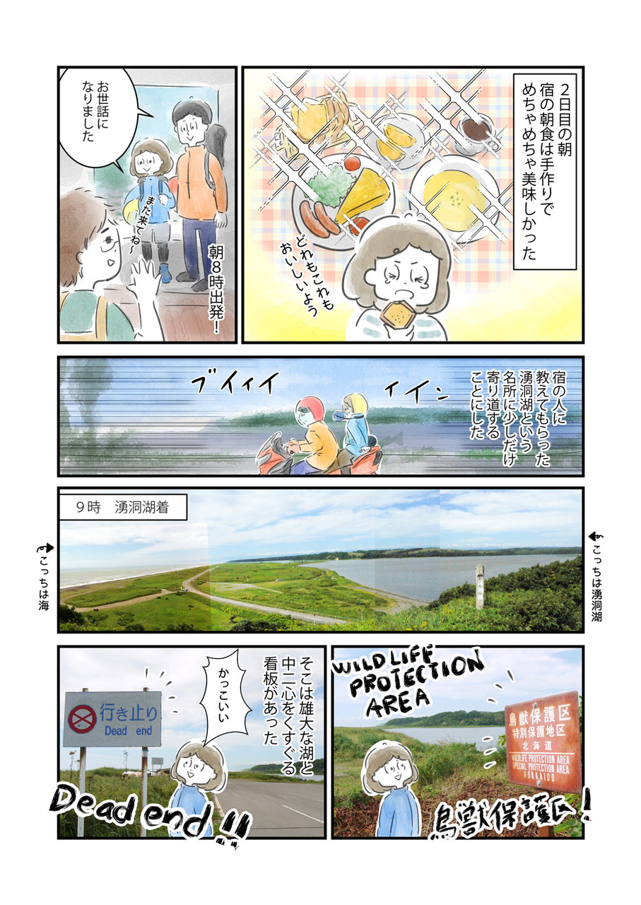 宿の方もバイクに乗るようで、途中に景色のいい湖があるよーと教えてもらい、そこに行ってみることに。前日の雨でにごってはいたけれど、写真におさまらないくらい大きな湖だった。
