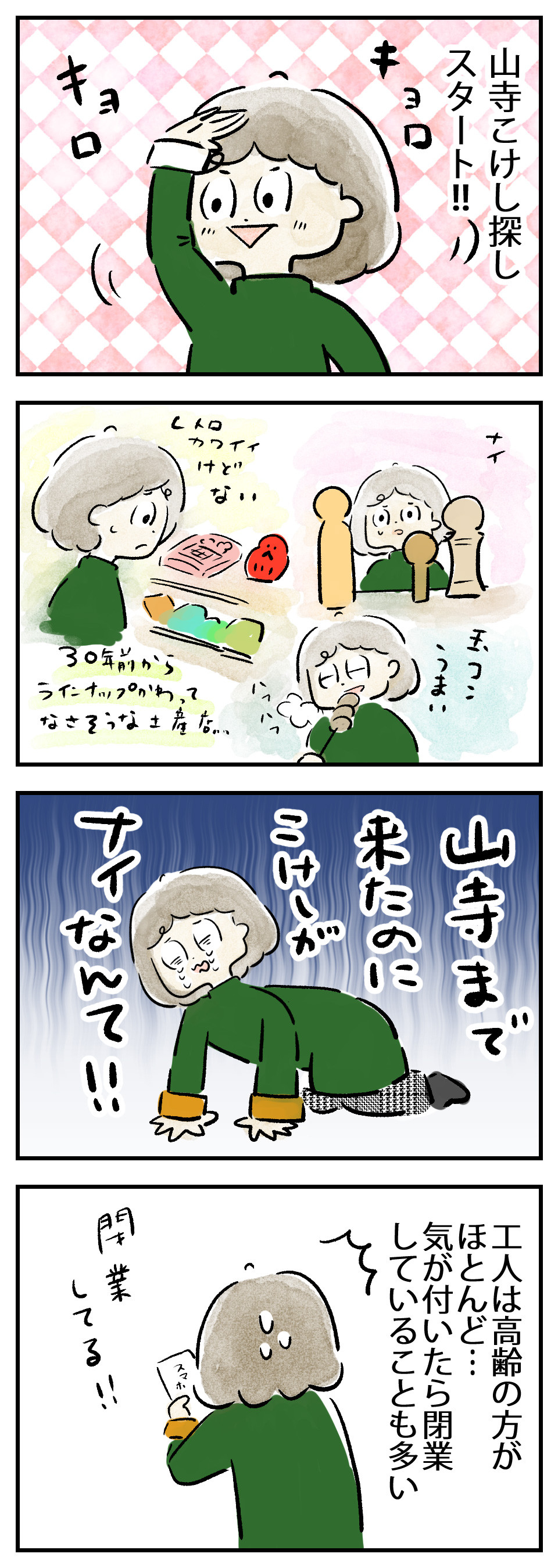 山寺を降りたら、こけし探しに出ました。
