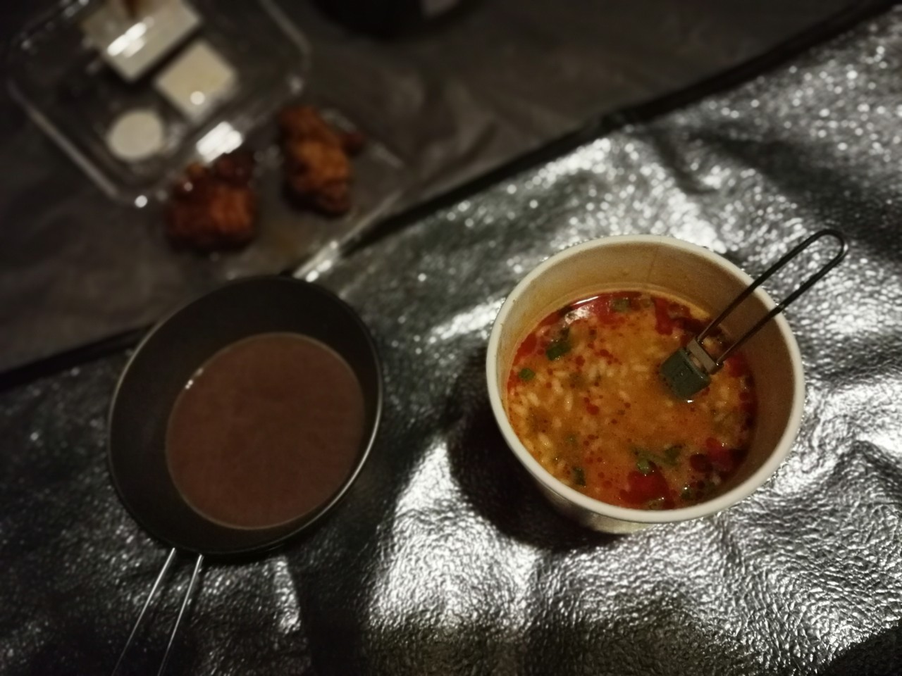 にしても予想外に寒くてビビる。温泉で温まって、最近ハマってる日清のウマーメシの坦々味が、あったかくてウマーでさらに体をあたためて。それでもやっぱりチョット寒い。カイロ持ってきてて良かった。