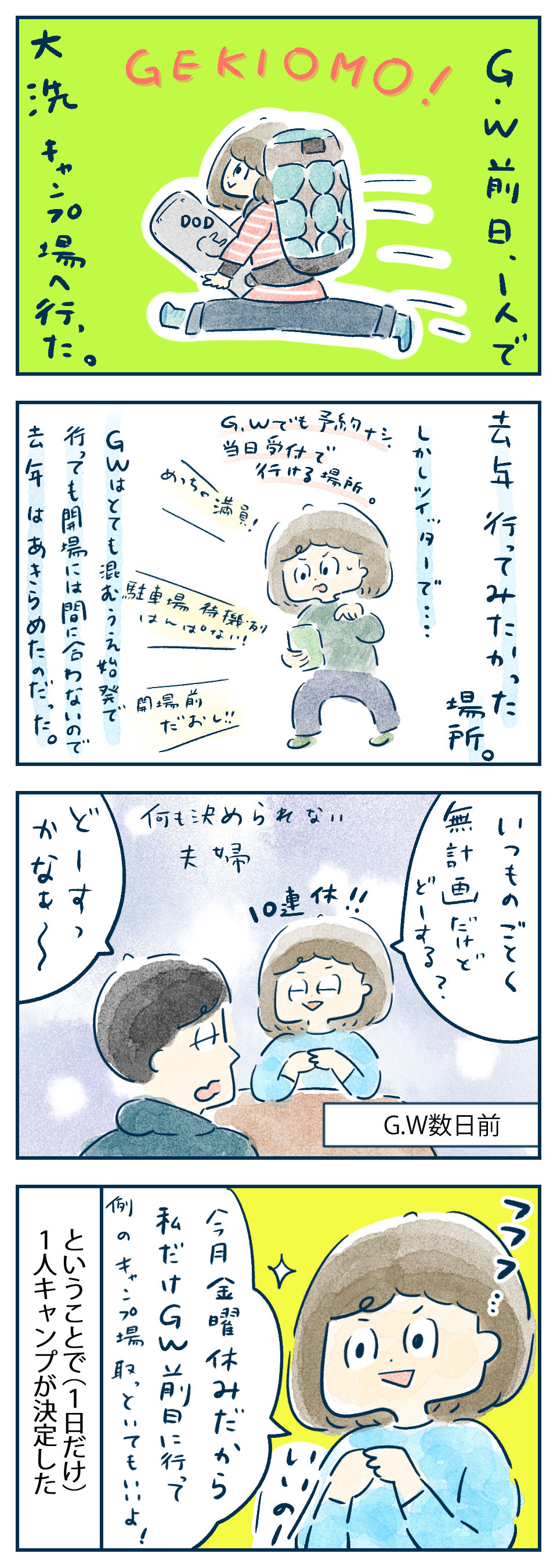 去年は満員で早くも締め切られたといった情報があったりしたのでGW前日に私だけ行って、場所確保しようということになりました。ソロでキャンプをしてみたかったし☆