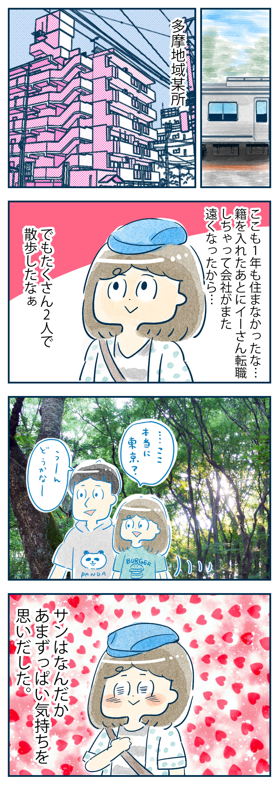 そうしてすべてのアパートを見終えると、的外れなサプライズをするイーさんへの不満はどこへやら、まんまとイーさんへの甘酸っぱい気持ちを取り戻していたのでした。
