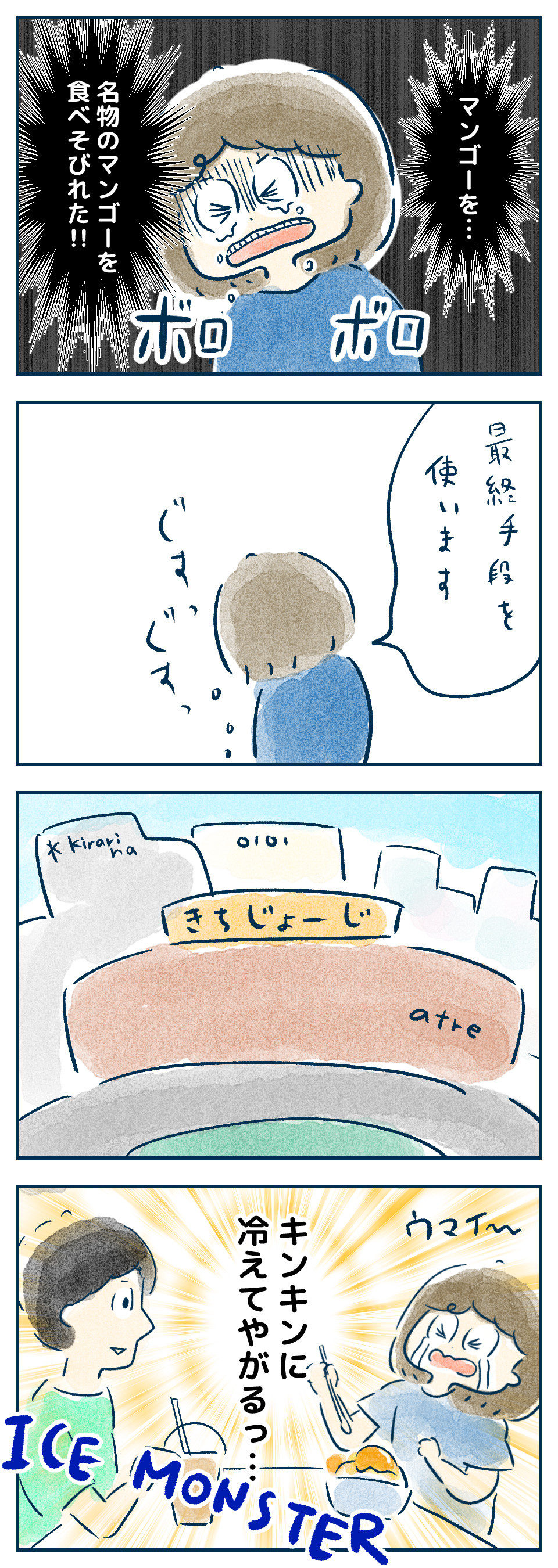 7月のマンゴーの旬の時期に行ってマンゴー食べ逃すなんて!どうしても…どうしてもマンゴーを食べたい私は、いてもたってもいられず吉祥寺にある期間限定ショップ・アイスモンスター(台湾のお店)のマンゴーかき氷を食べに行きました。