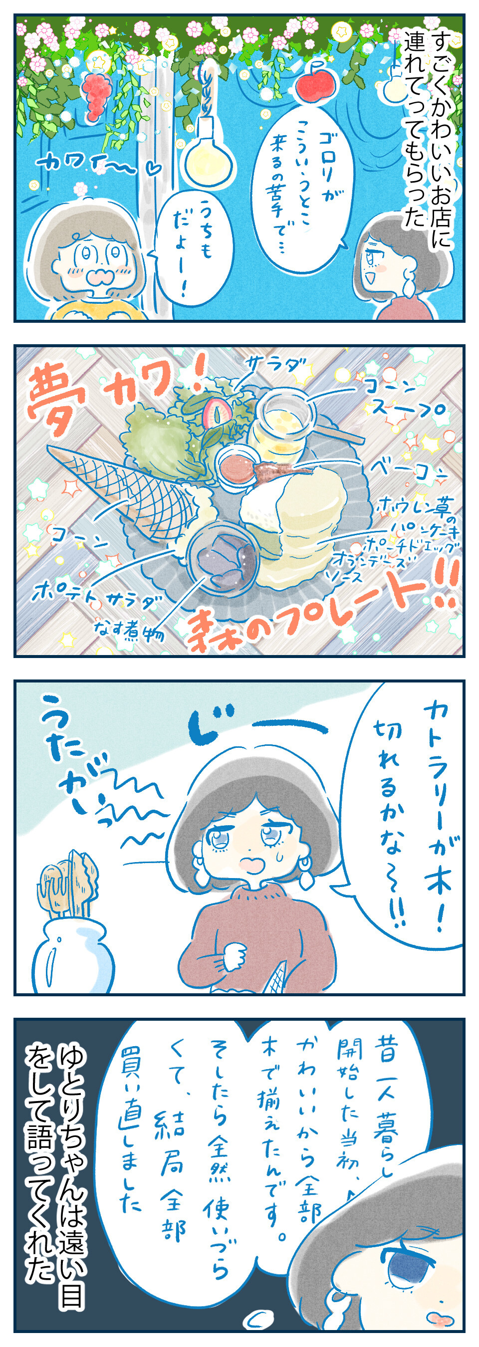 いつしか自分も選ばなくなってしまったようなキラキラなお店に連れてってもらって、死んだ女子力がよみがえった気がした。ありがとうゆとりちゃん。
