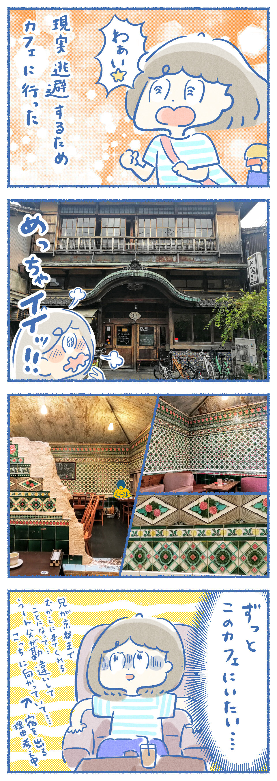 ケガ後の京都その3~現実逃避カフェ~ 2020年01月27日 19:49 前回の続きです。 癒しの銭湯カフェ!気付けば銭湯カフェのさらさ西陣に現実逃避をしていました。実は宿に着く前にも1件カフェに寄っていたけれど。食欲がないのでカフェオレだけたのんで、中のマジョリカタイルをめっちゃ堪能しながら宿から帰るためのいいわけを考え始めました。 村上開新堂のクッキーとピーチティーさらさ西陣 「夫婦の非日常」カテゴリの最新記事 タグ :#そういう星の下#オシャカフェ#ご当地グルメ#銭湯#京都 < 前の記事次の記事 > コメント コメントフォーム 名前 コメント 記事の評価 リセット リセット 顔 星 情報を記憶 コメントを投稿する