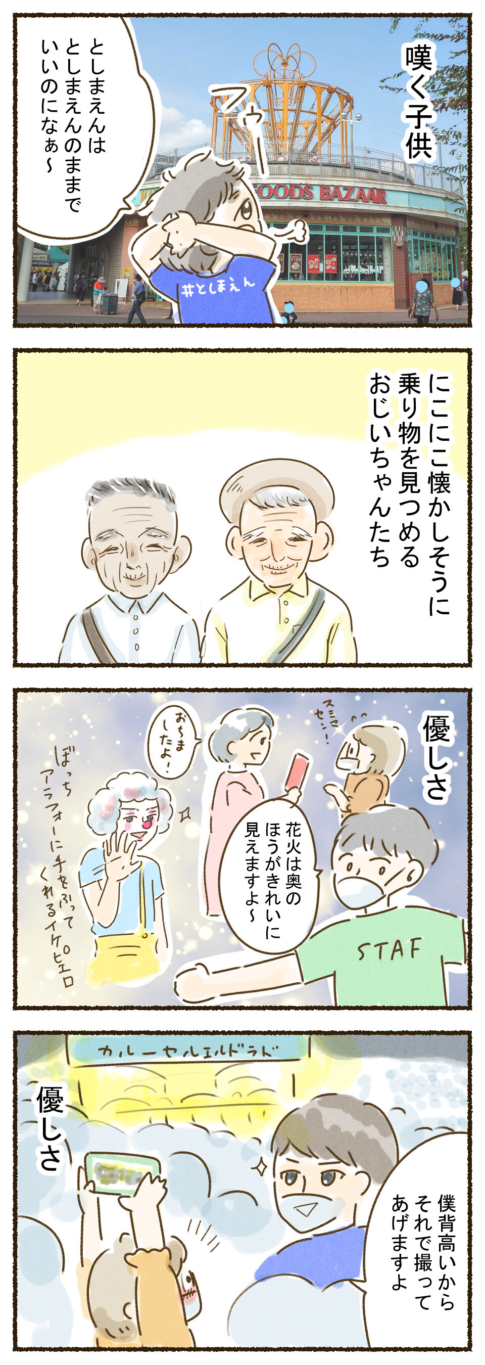 来園者の人たちの顔やスタッフの人たちがみんな笑顔で晴れやかな顔をしていて、この遊園地がこれまでどれだけ愛されてたのかを直に感じ取ることができました。