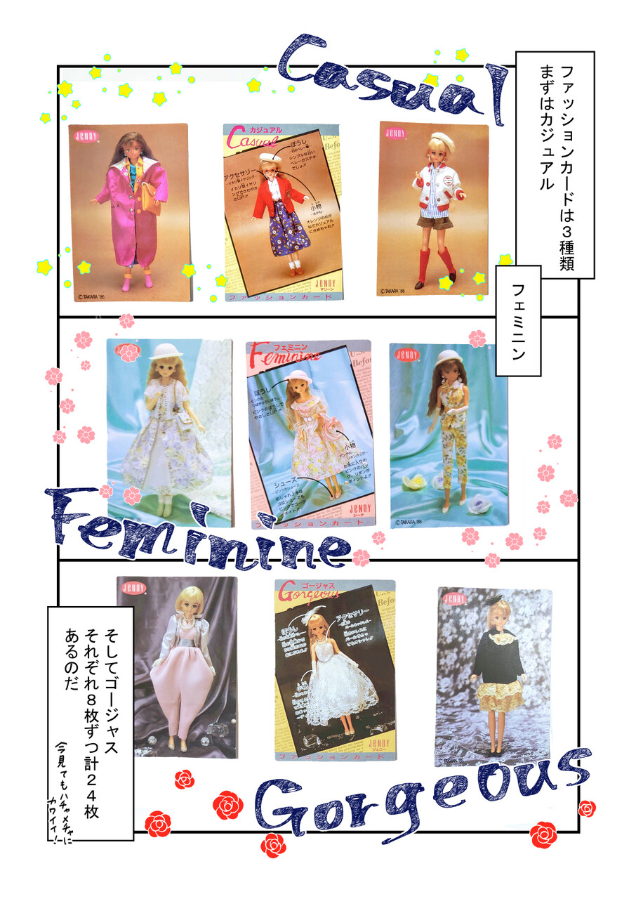 ジェニーのファッションコーディネイトゲーム 2022年02月15日 20:30 小さい頃、友達がいなかったのでほとんど一人遊びをしていました。その中で一番のお気に入りの遊びは、ジェニーちゃんのボードゲームに入っているカードで行うお人形ごっこ。ジェニーちゃんの人形も持っていたけど、服をほとんど持っていなくて。それにカードの中のジェニーちゃんはファッションがものすっごいオシャレだったのだ。80年代ポップカルチャーがふんだんで今見てもめちゃめちゃカワイイ!そして、25年以上前のゲームがこんな遊び方だったんだって知ることができてとても新鮮で面白かった。夫も楽しそうに遊んでくれて、それも嬉しかった。 「夫婦の日常」カテゴリの最新記事 タグ :#ゲーム#小さい頃#メヲトーーク < 前の記事次の記事 > コメント コメントフォーム 名前 コメント 記事の評価 リセット リセット 顔 星 情報を記憶 コメントを投稿する